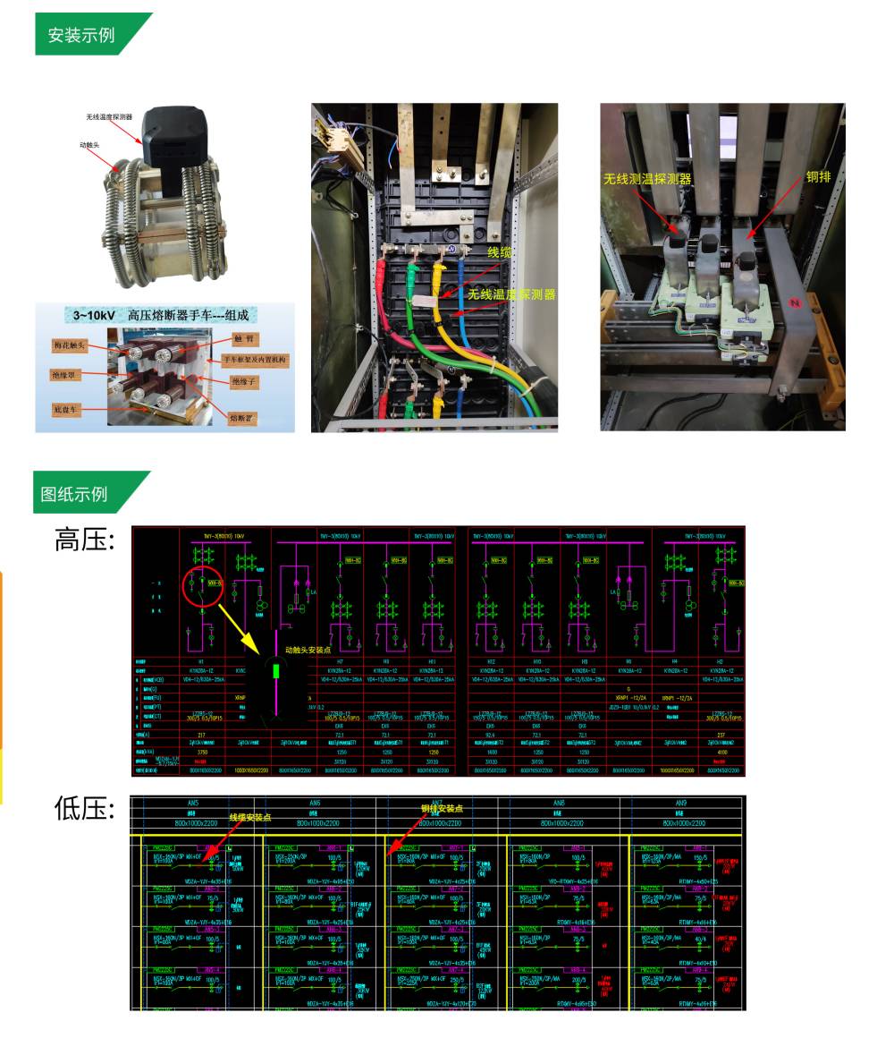 運行中的電氣系統用戶(包括高低壓配電柜用戶)需要一套預警系統,對各種原因導致的異常的溫度升高,進行實時監測,比如斷路器下的接點處,高壓觸頭處的溫度進行監測,并將溫度數據實時的上傳,并能夠通過手機等方式接收到報警信息,及時處理,從而避免火災事故的發生。